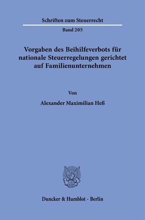 'Requirements for National Tax Regulations Aimed at Family Businesses Derived from the Prohibition of State Aid': Based on the prohibition of state aid under European law, the author of this paper derives requirements for national tax law regulations aimed at family businesses. He argues that family business-related differentiations in tax regulations are permissible under state aid law if they result from a permissible principle or objective inherent in the system. In this context, he takes a closer look at the impact of the ability-to-pay principle and individual system-inherent objectives, such as job protection and the prevention of abuse.