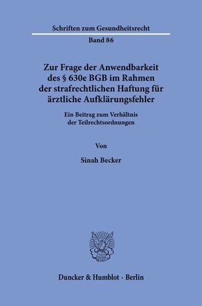 'On the Question of the Applicability of § 630e BGB in the Context of Criminal Liability for Medical Informed Consent Errors': The physicians duty to inform developed over decades by civil court jurisdiction also apply to criminal law in die sense of limited accessoriness. As a result, this does not mean necessarily a concurrence of civil and criminal liability for medical errors in the form of incorrect or missing information if the procedural and substantive particularities of the different legal systems and thus the principle of a consistent overall legal systems are not to be abandoned.